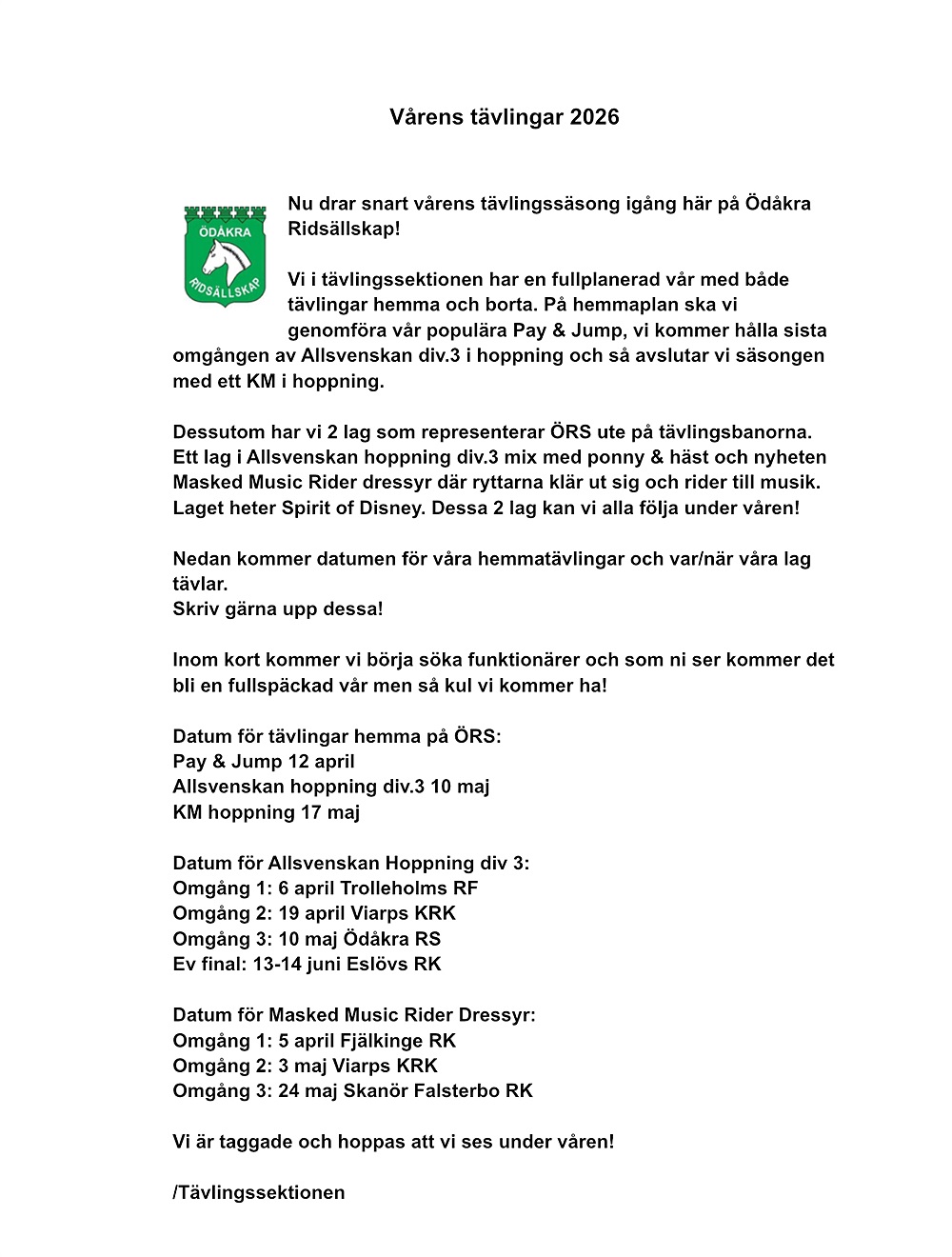 Vi träffas Tisdagar och Torsdagar kl 12.30-14.30. Hör gärna av er på mejl ridskolan@ors.nu om ni vill delta.